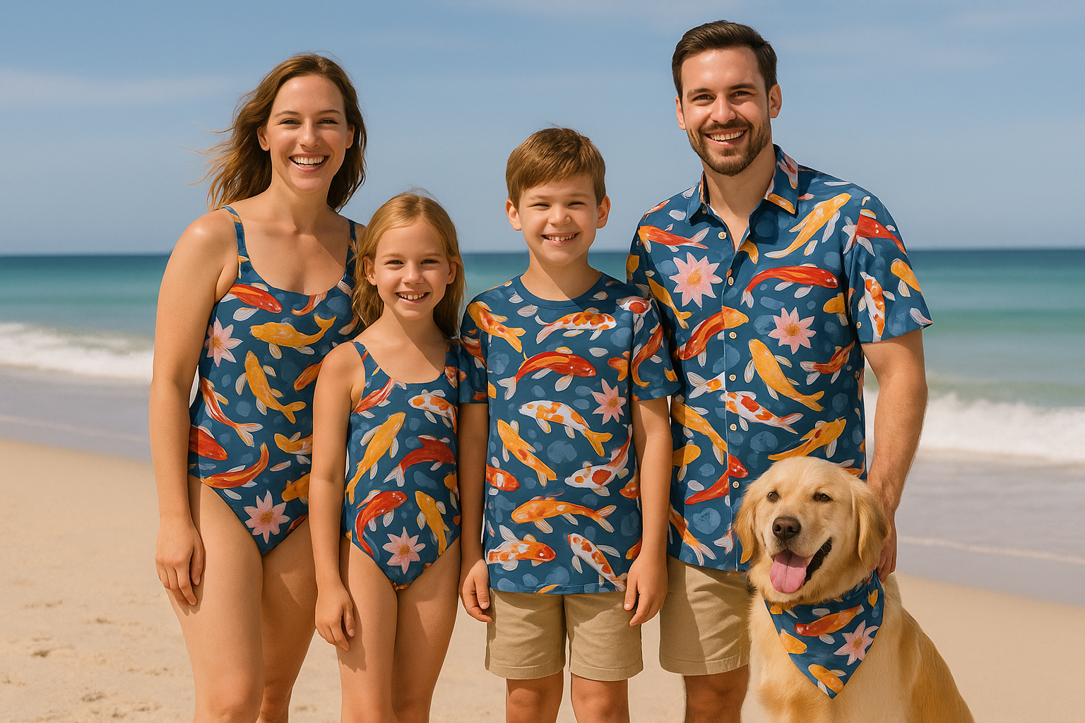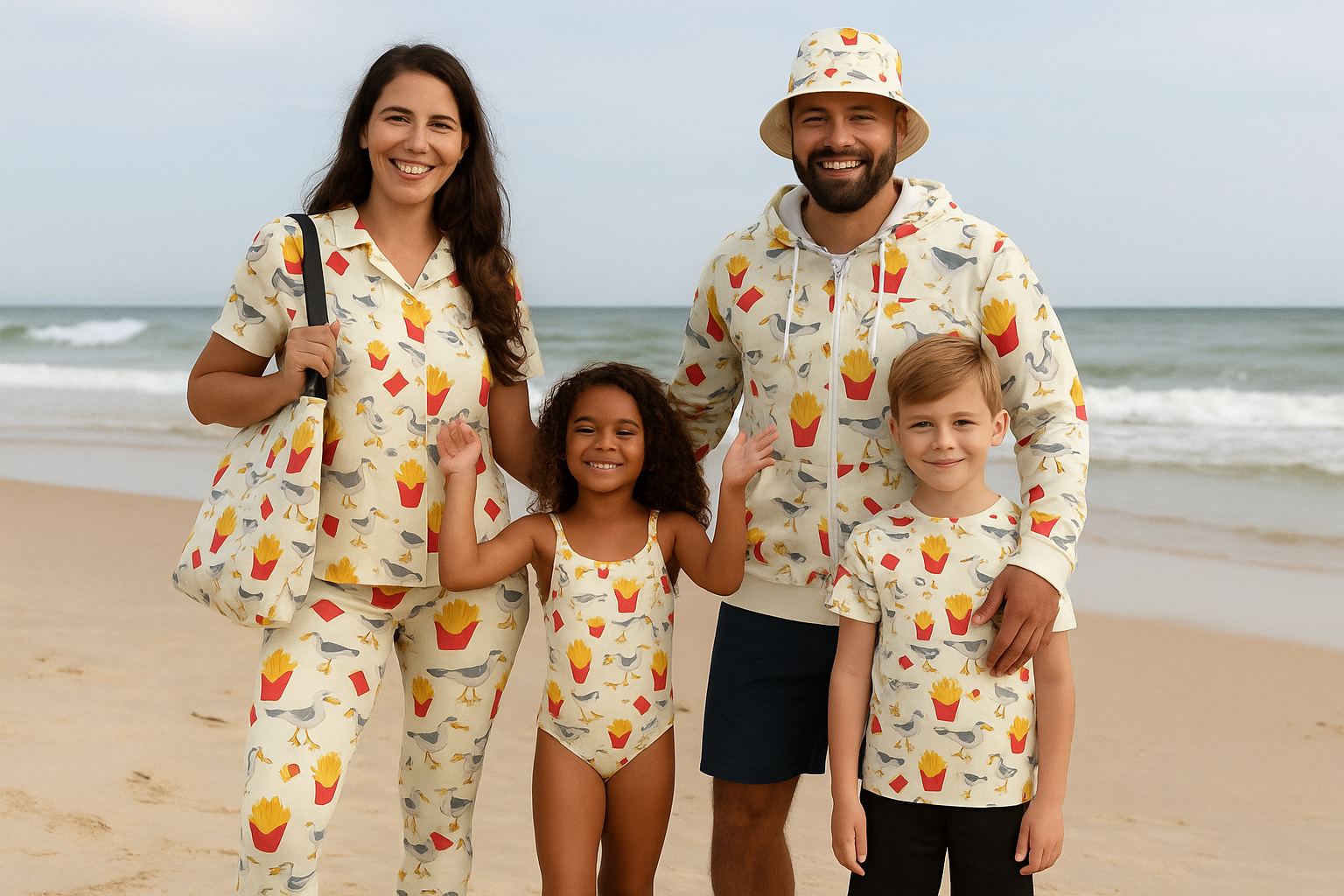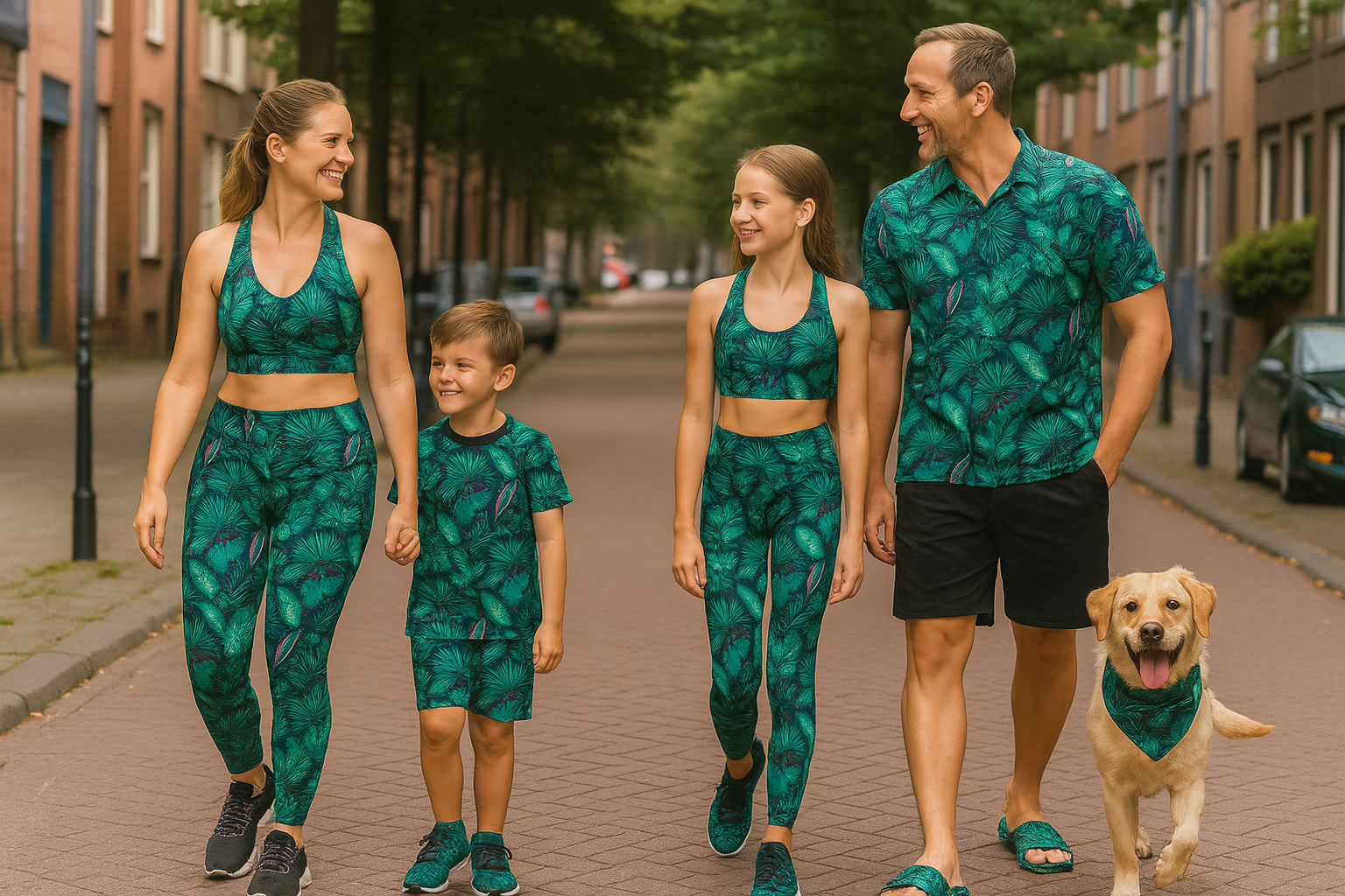 "Tiny and Tall celebrates love and connection with family matching outfits for all — embracing fun, unity, and diversity, from tiny and tall humans to dogs."